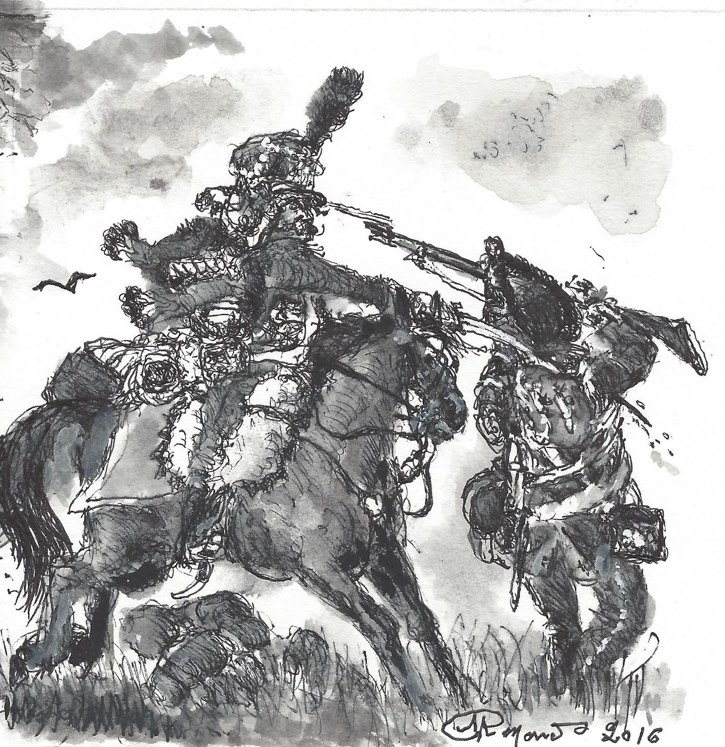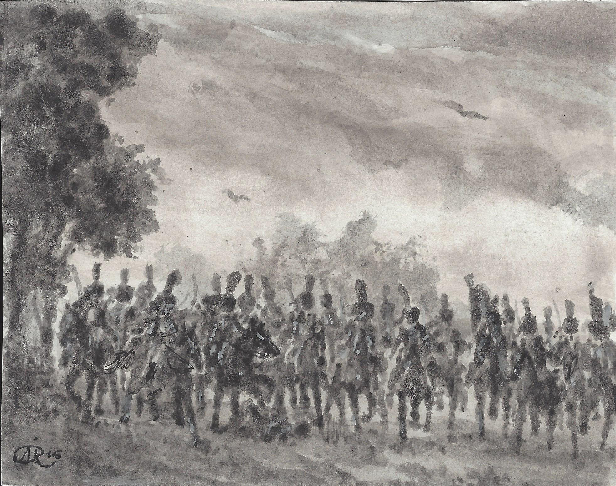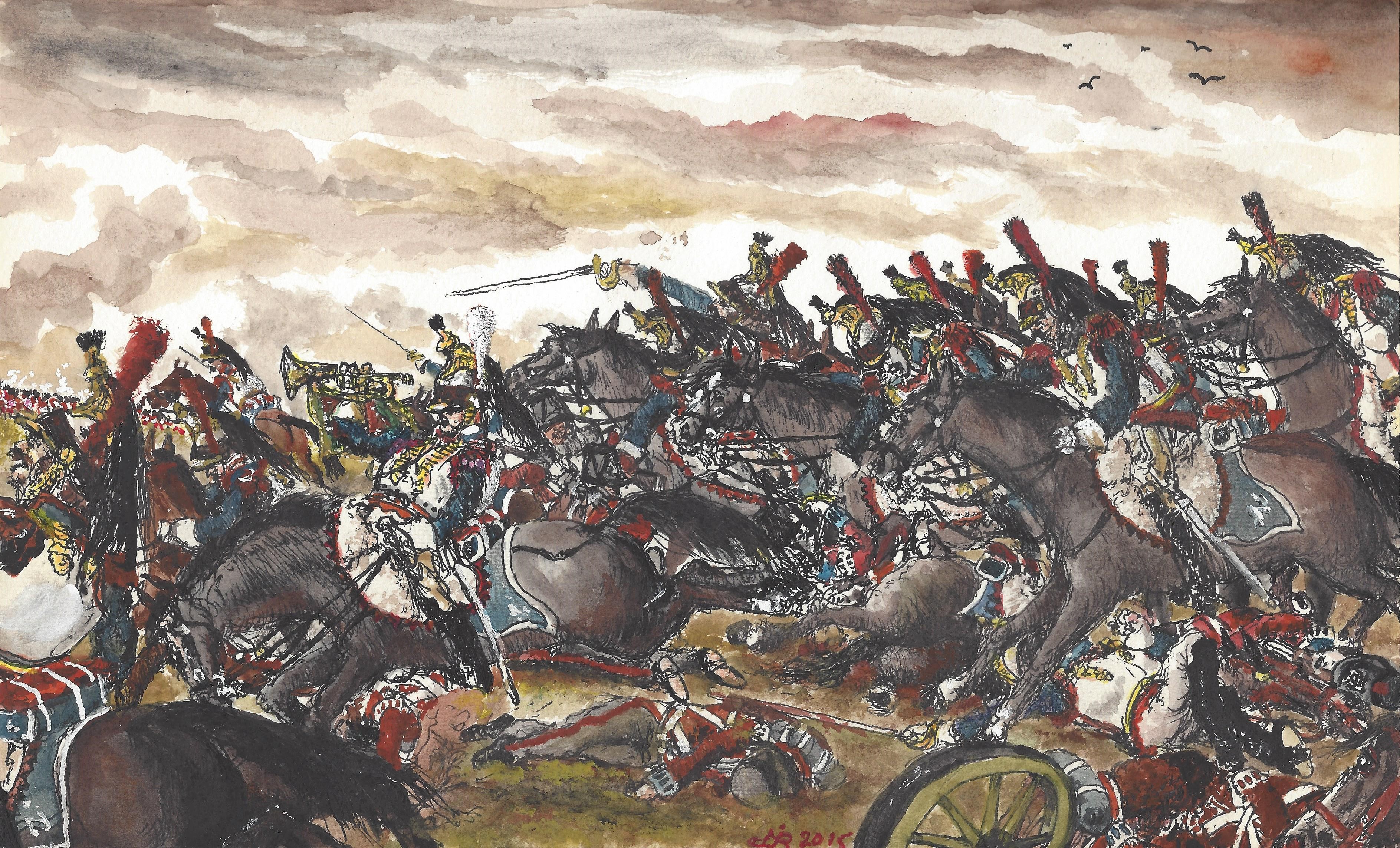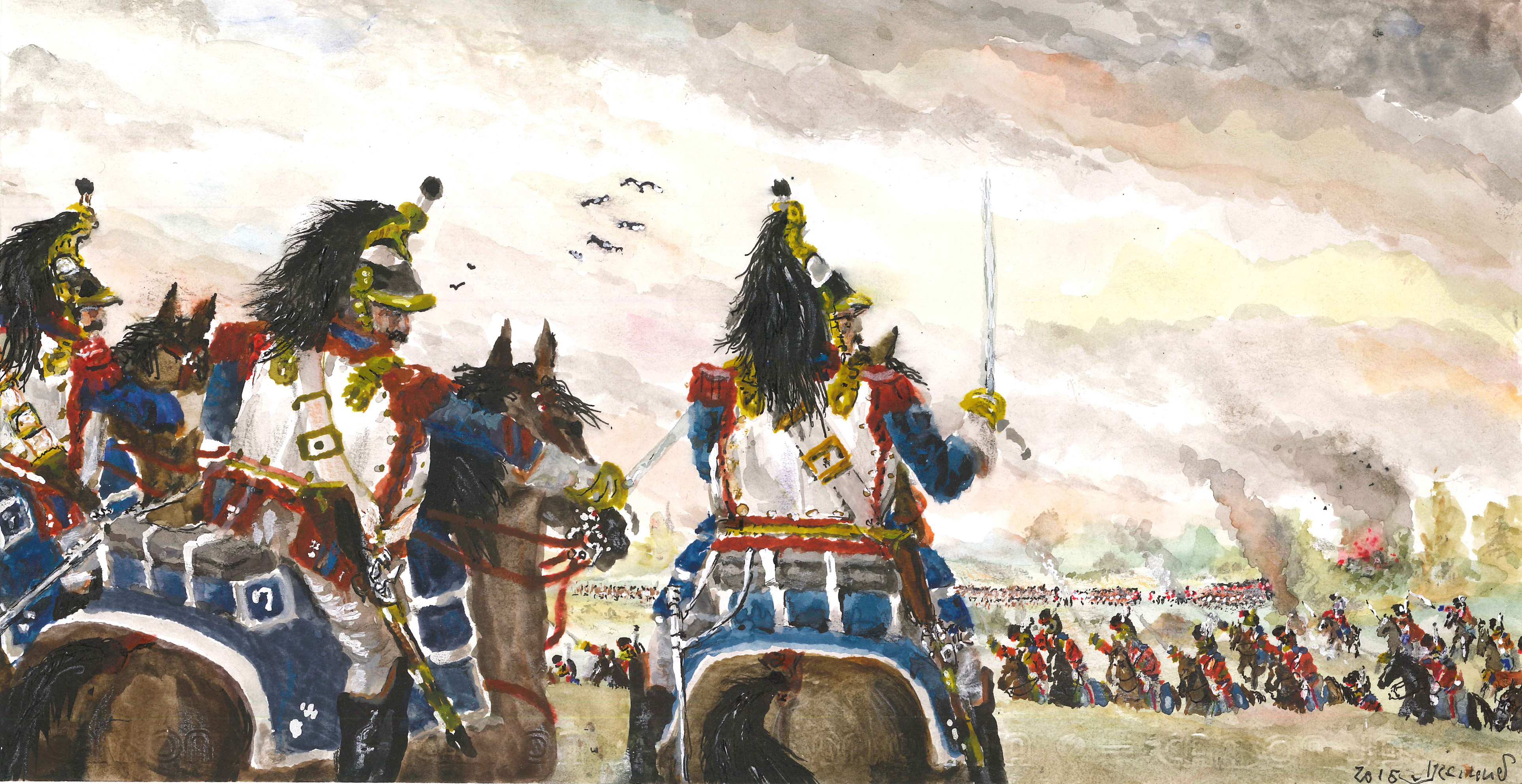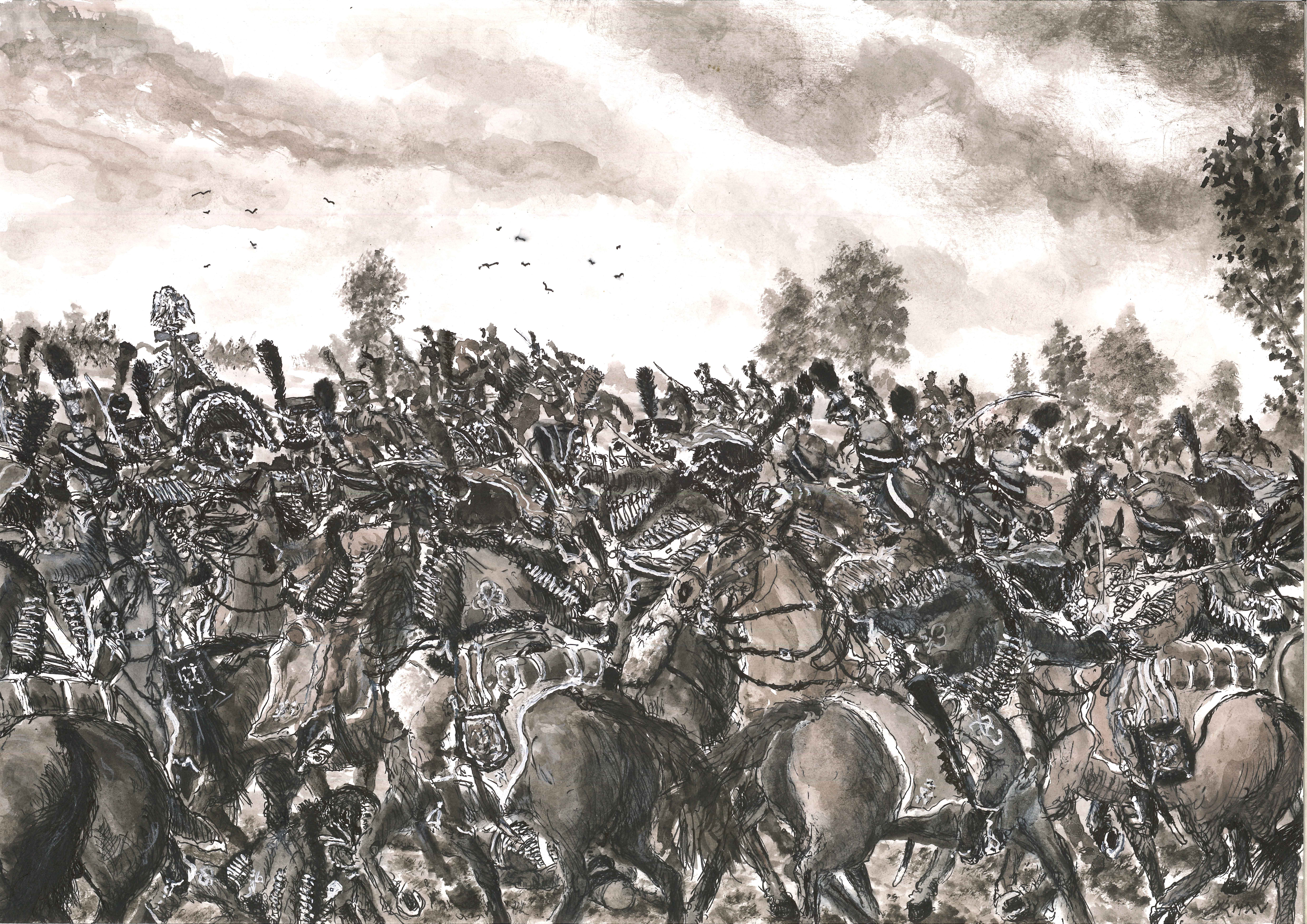 B2 - Quatre Bras 17 juin 1815, les escadrons de service poursuivent les Anglo-Hanovriens en déroute |