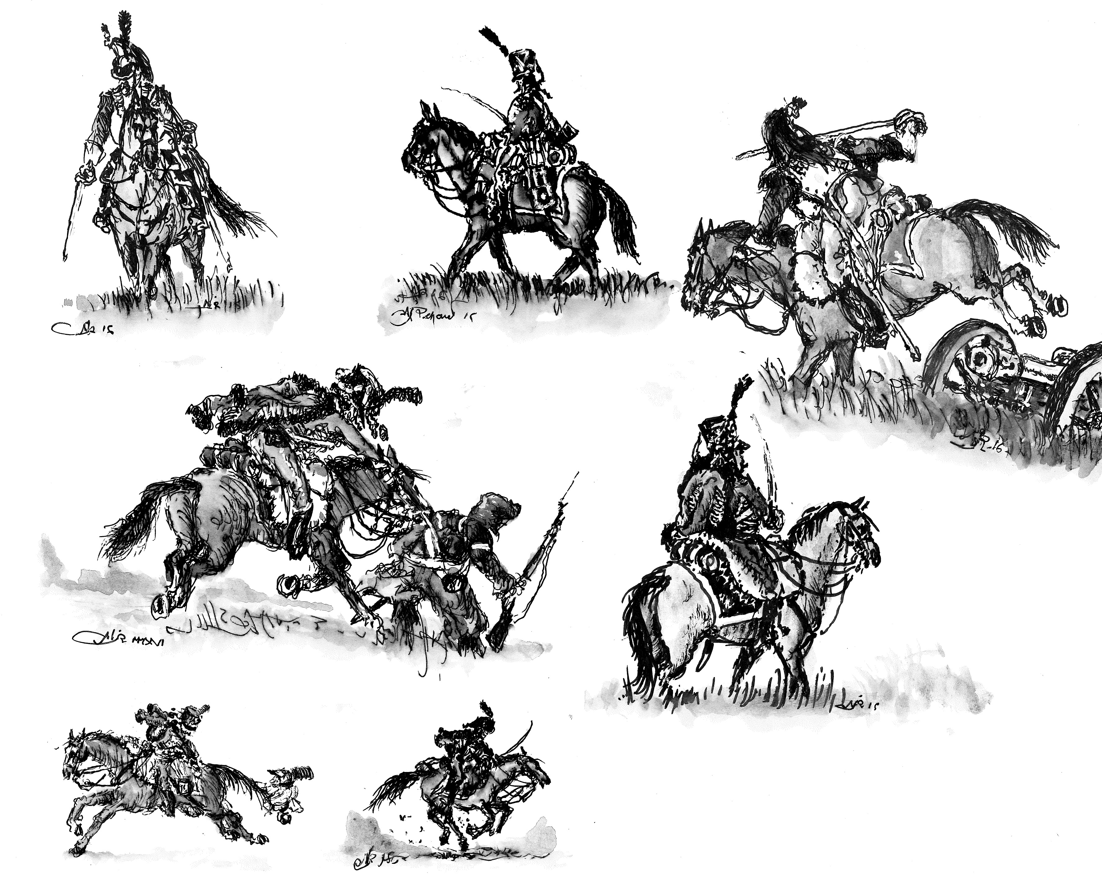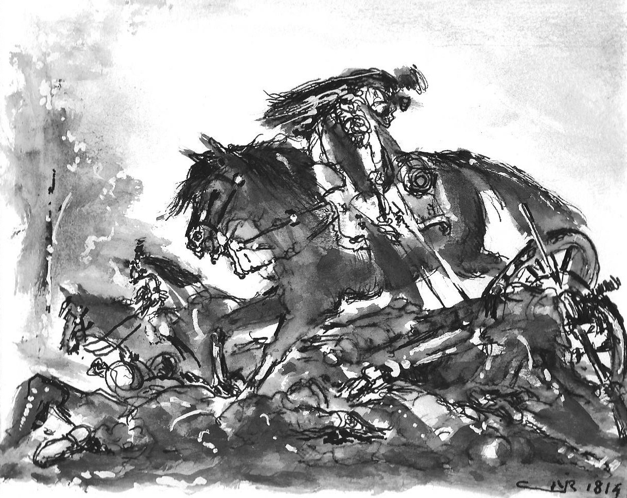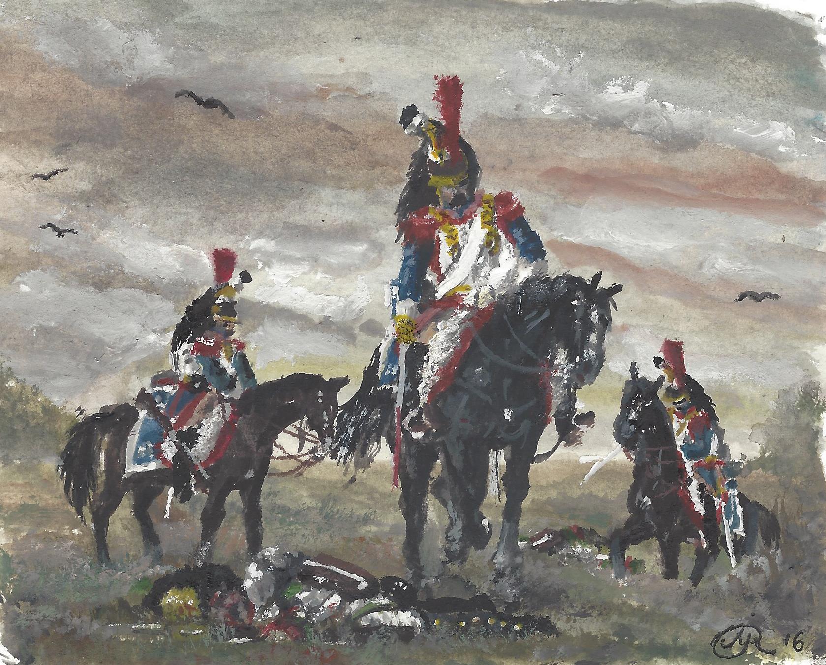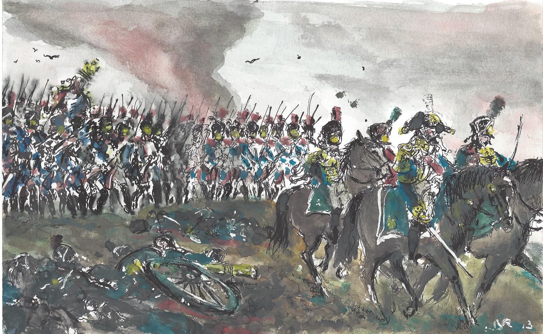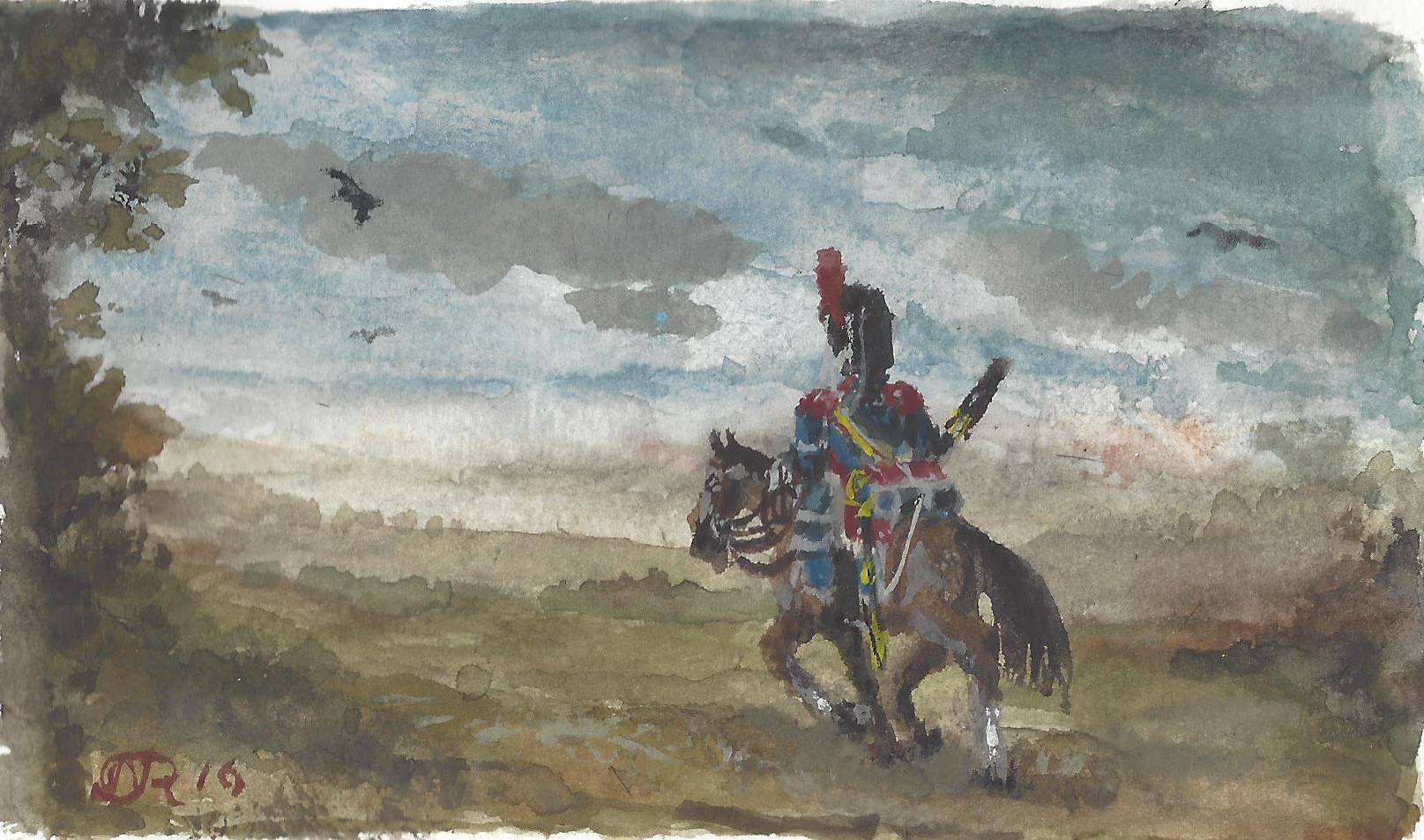 B2 - Quatre Bras 17 juin 1815, les escadrons de service poursuivent les Anglo-Hanovriens en déroute |