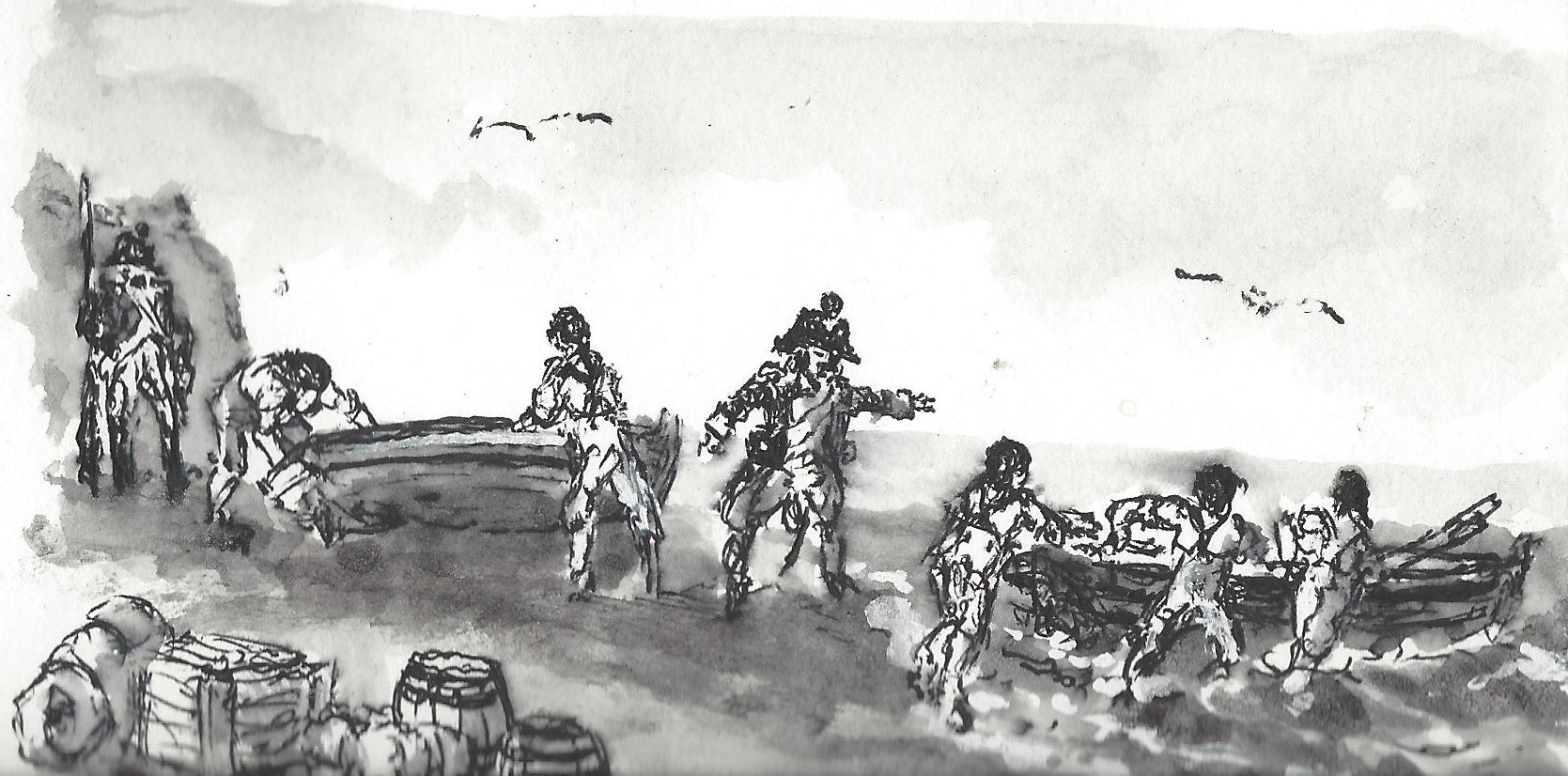 A22- Camp de Boulogne, 2 vaisseaux en approche, fuyant la