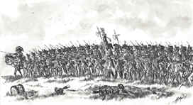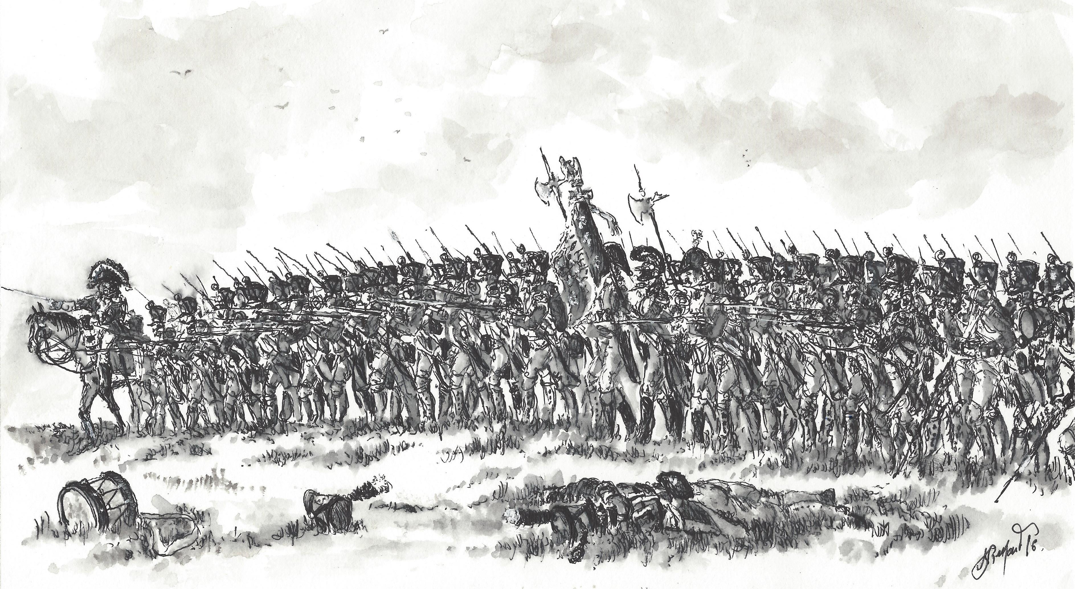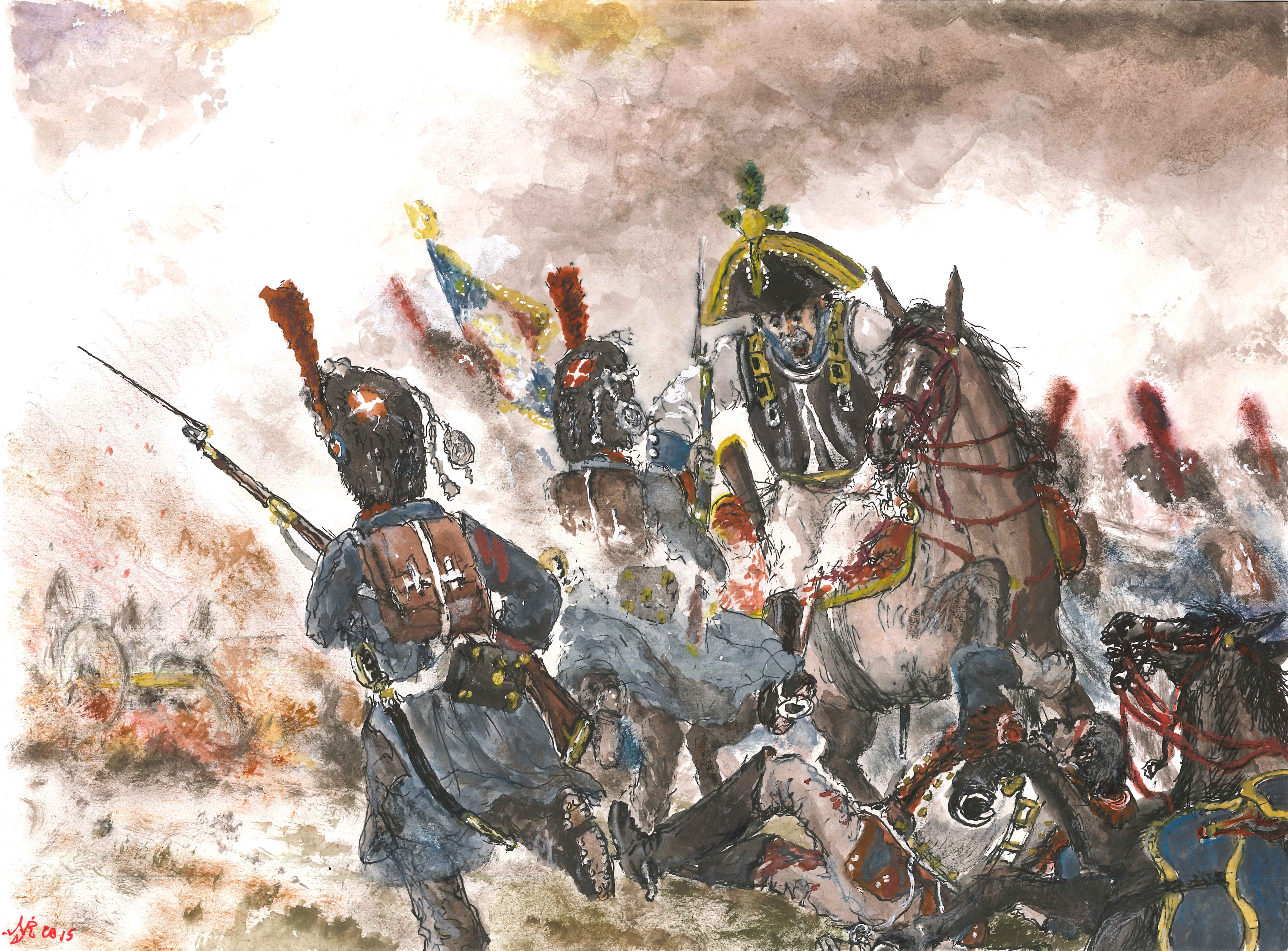 Hohenlinden (campagne d'Autriche 1809). A remarquer, la garde au drapeau :