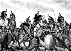 Polonais sabrant les Houlans s'emparèrent de leurs lances et les défirent