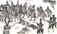 Grosse Cavalerie en appui des grenadiers affrontent les avant-gardes de