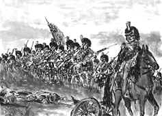 chargent sur l'aile droite anglo-néerlandaise, vers la Haye Sainte